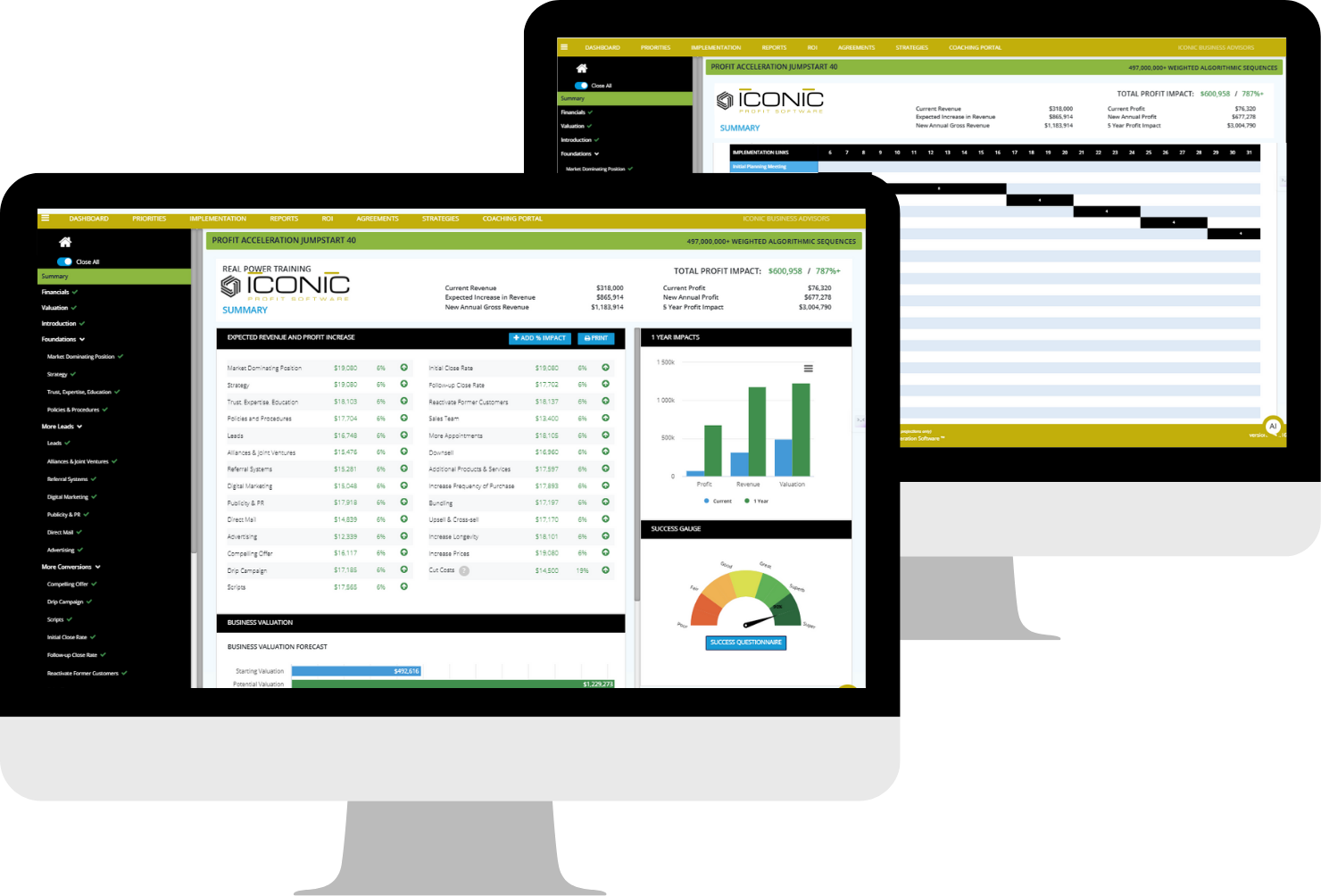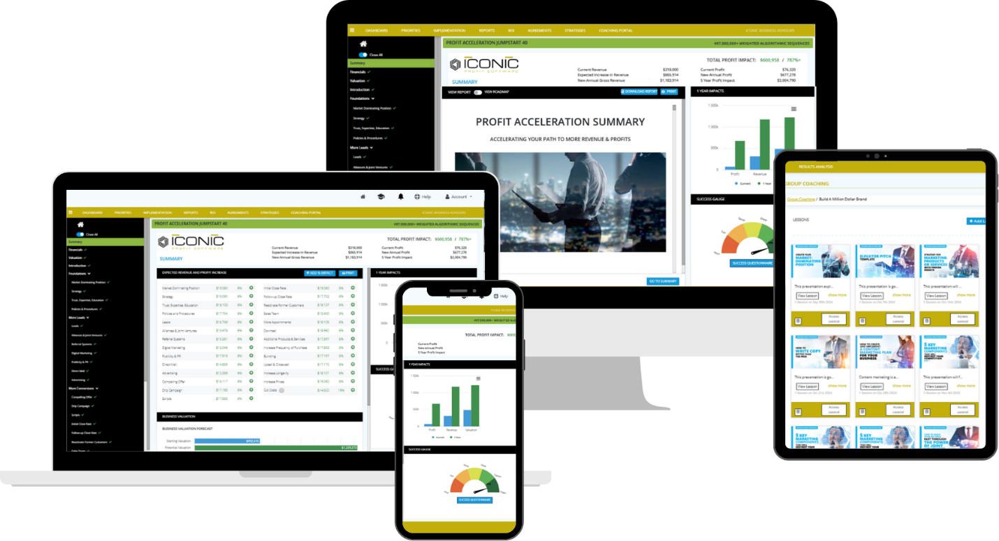 Iconic Profit Software™ features a suite of software to help you with lead generation, signing clients, assessing your clients business, organizing and scheduling your coaching and more.